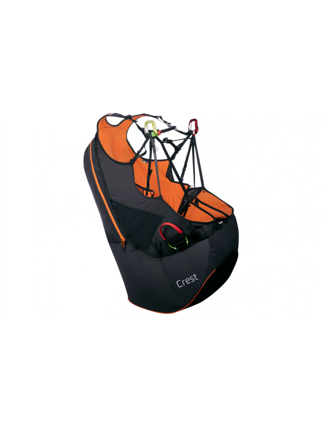 Cette sellette sans plateau pèse moins de 2 kg en taille M, y compris le sac Airbag (amovible), les mousquetons, le container de secours et l’accélérateur à double barreau.
